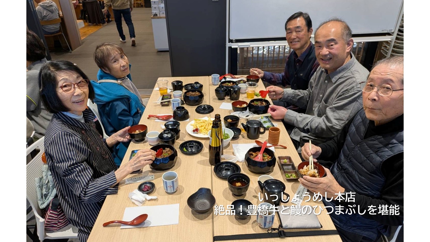 昼食は、道の駅とよはしの中にある「いっしょうめし本店」にて、豊橋牛と鰻のひつまぶしを頂きました。