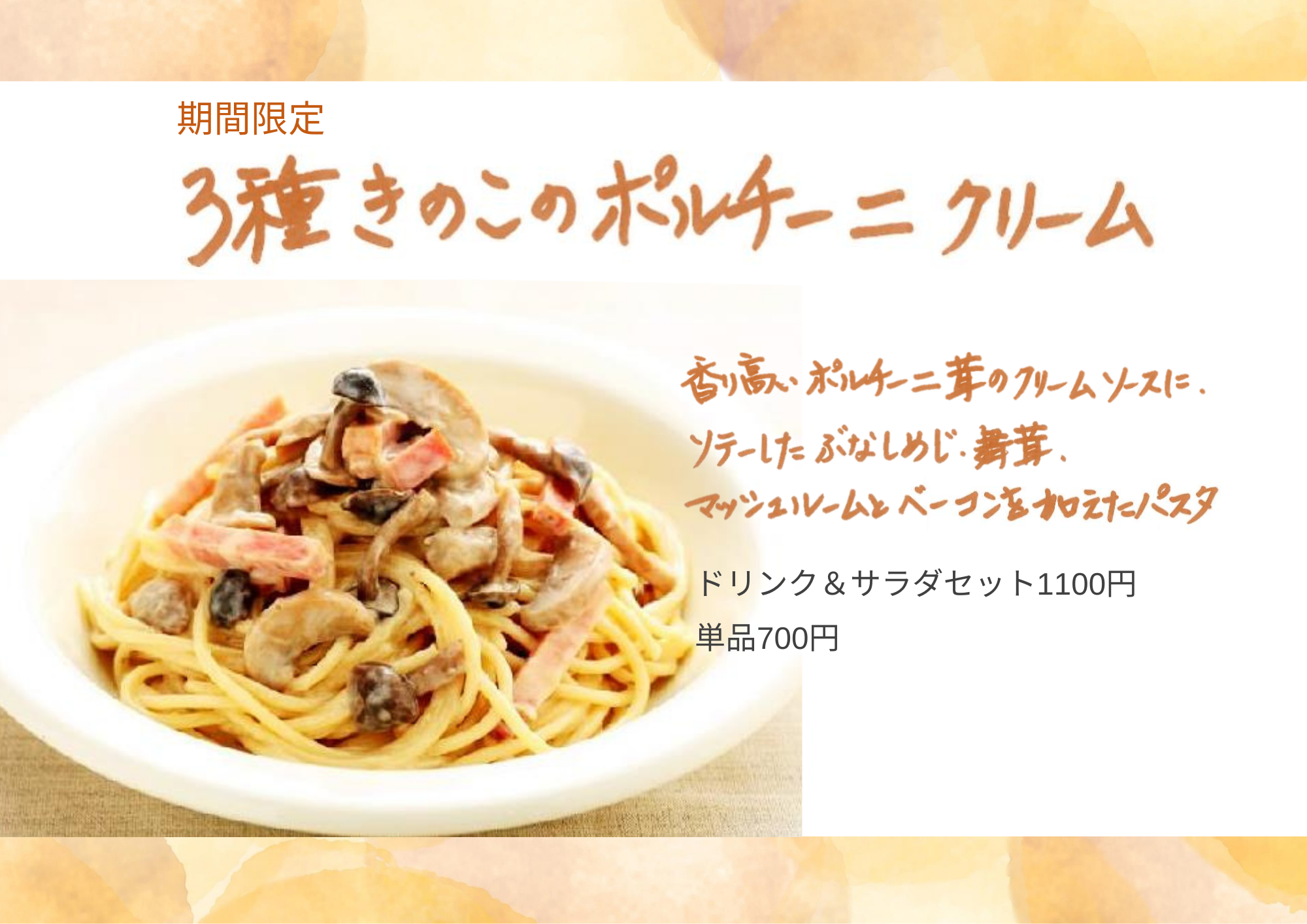 期間限定「3種きのこのポルチーニクリーム」登場